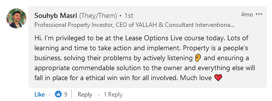 If you find that Lease Options Live isn't the right fit for you anytime before the end of the first day, simply return the course materials, and we'll provide a full refund of the workshop fee. Please note that this money-back guarantee is applicable only by your attendance at the workshop.